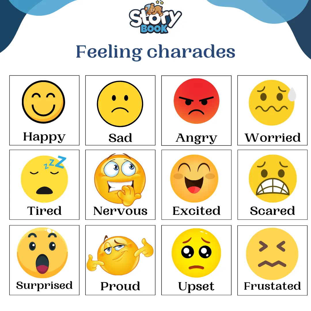 You can use emotion cards or simply write down a list of feelings on pieces of paper. Each turn, the child must act out the emotion as clearly as possible for others to identify.