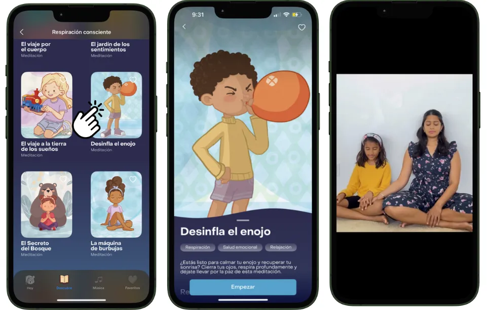 Mientras realizan este ejercicio, ayuda a tu hijo a manejar su enojo de forma tranquila y divertida con Desinfla el enojo de la App de Storybook.
