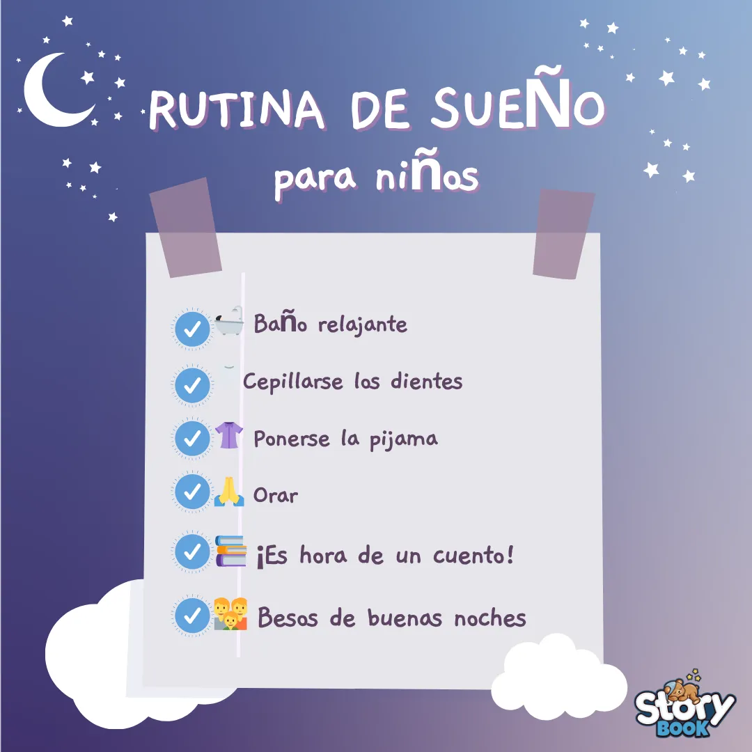 Establece una rutina nocturna que incluya actividades relajantes de acuerdo a su edad y desarrollo, como leer un libro, abrazar a su peluche favorito, apagar la lámpara o escuchar música suave.